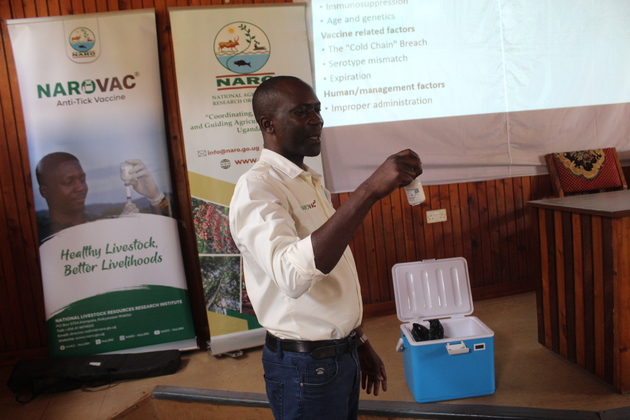 Addressing the participants,Dr.James Bugeza Katamba,a Senior Research Officer at NARO under the National Resources Research Program in the department of Vaccinology and Biosciences,said the vaccine is designed to significantly reduce tick infestation in cattle,a major cause of productivity losses among farmers.